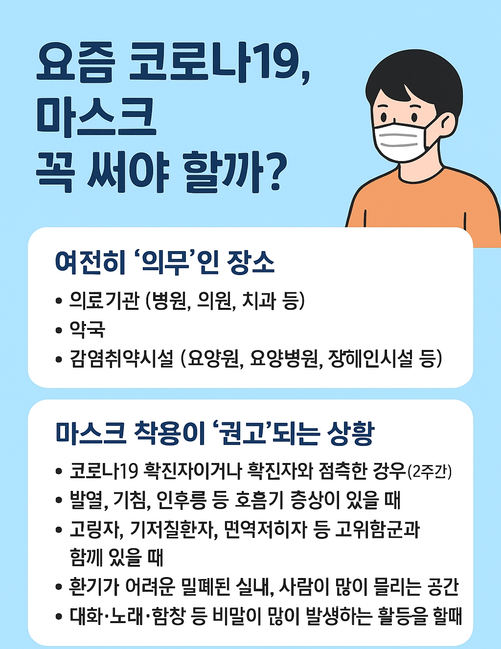 😷 마스크 착용이 ‘권고’되는 상황