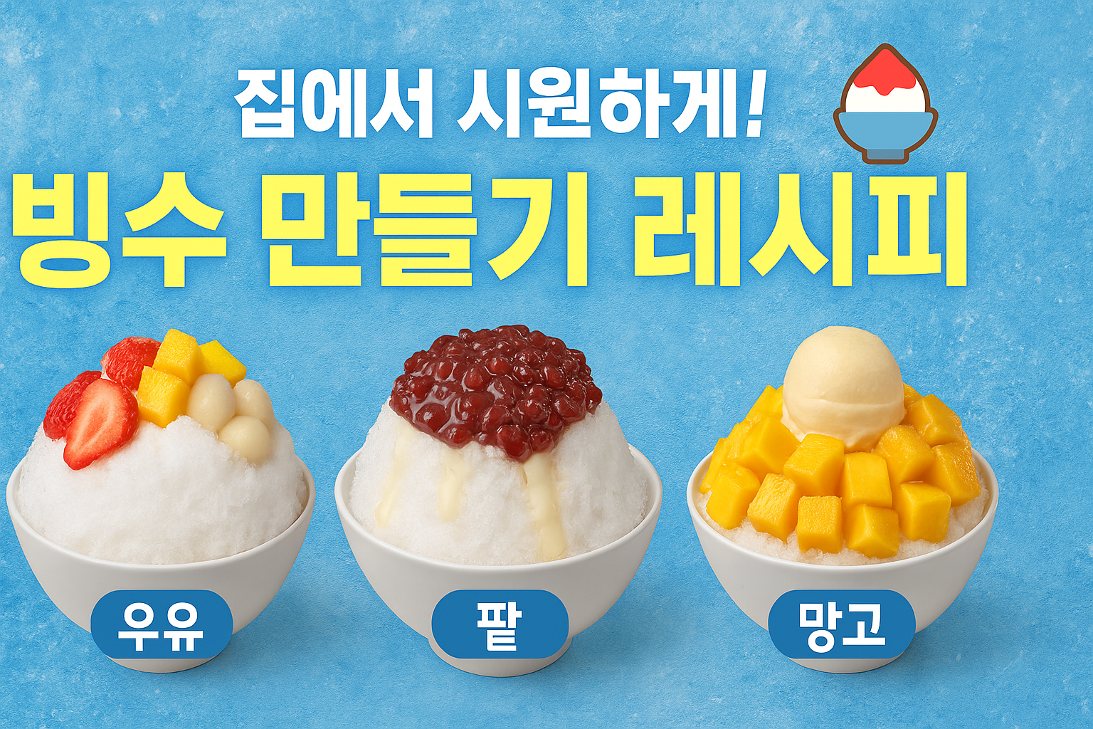 오늘은 대표적인 우유빙수, 팥빙수, 망고빙수까지 3가지 레시피를 소개할게요.