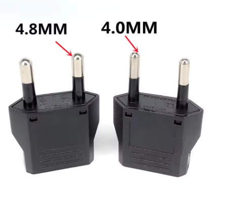 - 특징: 유럽은 한국과 같은 220V 전압을 사용합니다. 하지만 국가별로 플러그 모양이 다를 수 있으므로 방문하는 국가의 표준 플러그를 확인해야 합니다. 대부분의 유럽 국가에서는 C형이나 F형 플러그를 사용하기 때문에, 한국에서 사용하는 플러그와 호환이 잘 되는 편입니다. 그러나 반대로 유럽 제품의 전자기기들을 대한민국에서 사용할때 플러그의 직경이 아래 사진처럼 4.0MM로 된 경우가 있어서 한국 콘센트에 꽃게 되면 헐렁한 경우가 있습니다. 유럽 제품을 한국 콘센트에 사용할때에는 4.8MM의 아래 사진과 같은 KR 변환 플러그를 이용해서 사용한다면 대한민국 콘센트에 유럽 전자기기 제품을 조금더 안정적으로 사용할수가 있습니다 최근 알리익스프레스와 같은 사이트에서 중국에서 제조된 유럽 제품들이 아래 4.0MM 플러그를 채용하고 있는데 그러한 제품을 국내에서 구입할때에도 4.8MM 플러그를 구입해서 사용하시면 플러그의 헐렁한 문제를 해결할수가 있습니다